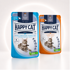 Happy Cat Meat in Sauce - Culinary Quellwasser-ForellePilnvērtīga mitrā barība pieaugušiem kaķiem ar foreli.Gardēžiem, kam garšo zivis, varat pasniegt Happy Cat Meat in Sauce - Culinary Quellwasser-Forelle. Garda, graudaugus nesaturoša mitrā barība kaķiem. Pateicoties lielajam dzīvnieku olbaltu..